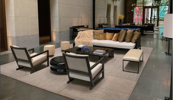 上品で繊細な織目とデザインの美しさが魅力で、優れた耐久性とデザイン性、耐候性を兼ね備えた高級感のある織物です。