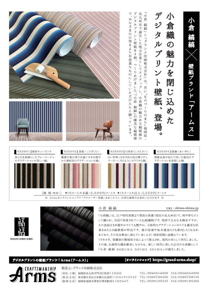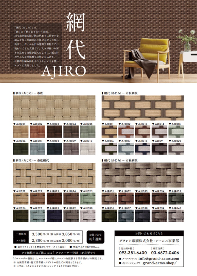 壁紙Armsは、色そのもののイメージだけにとらわれない、表面の凹凸、テクスチャーと光沢、繊細で日本的な色への感覚を