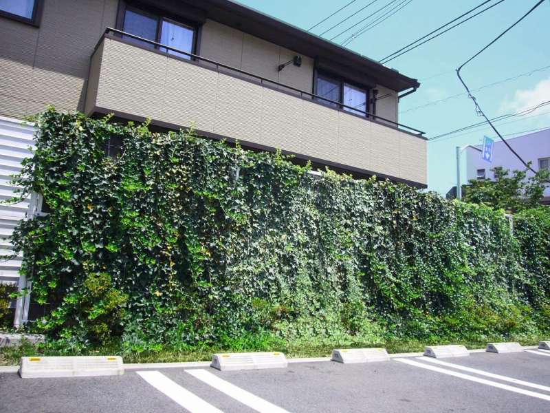 目隠し効果もあわせもつ、新しいタイプの緑化フェンスです。