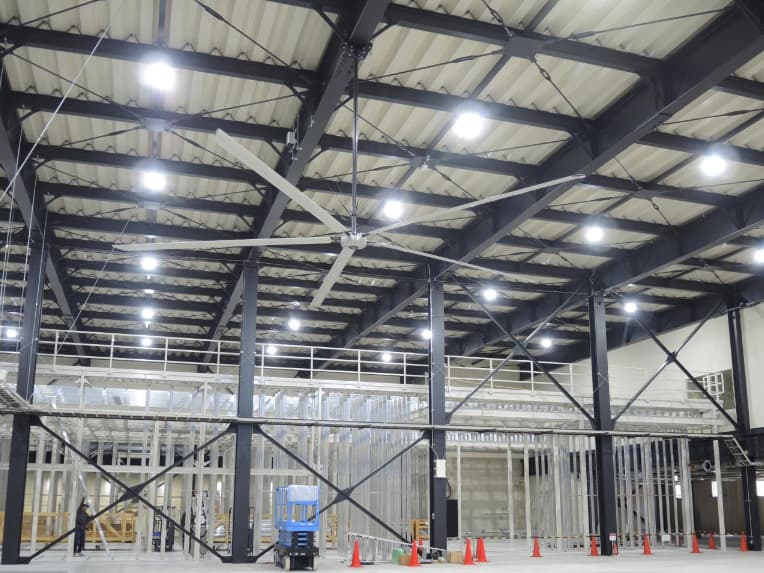 温度ムラの解消による省エネ効果と、大送風量による広域な空気循環で、工場・倉庫・体育館・娯楽施設等の大空間を快適にします。