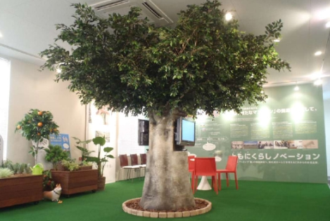 衛生面や周囲の環境により生の植物では設置できない場所でも、比較的簡単に緑化できるのが魅力。