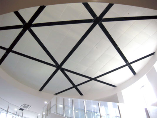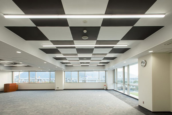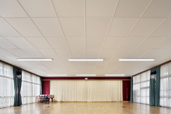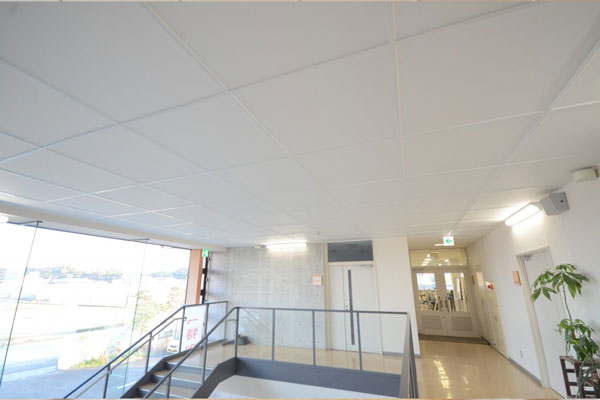 「かるてん」は、軽くてやわらかい超軽量天井材です。1㎡あたりわずか700gの軽さと、不燃性・面剛性を同時に実現。