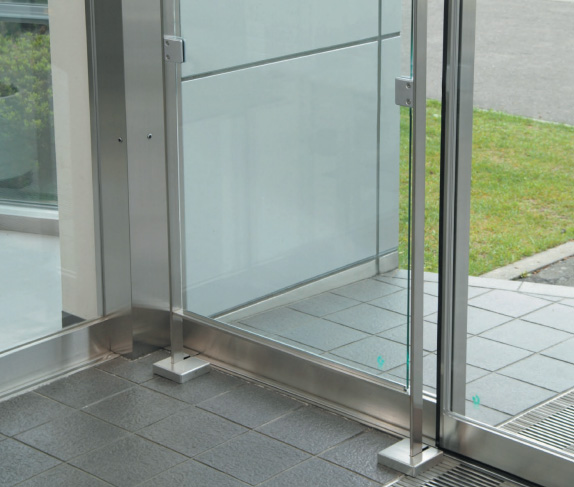 「STガード」は、三和タジマの自動ドア用防護柵です。自動ドア戸袋側の接触や衝突を防止します。
