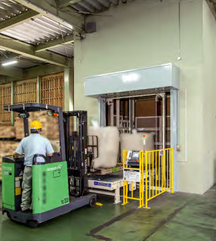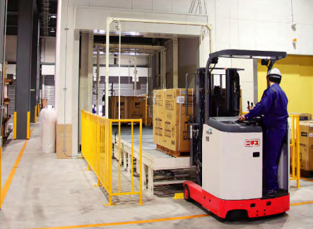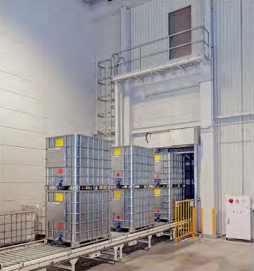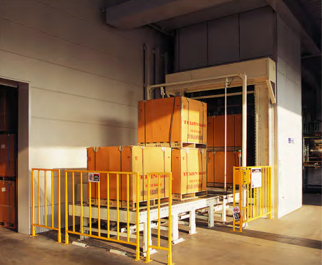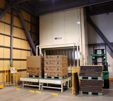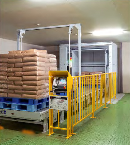 物流倉庫・配送センターや工場などにおける重量物搬送用垂直コンベヤです。