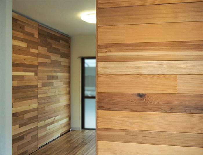 無垢木材の調湿作用で、クローゼットや収納の内張りにも最適です。