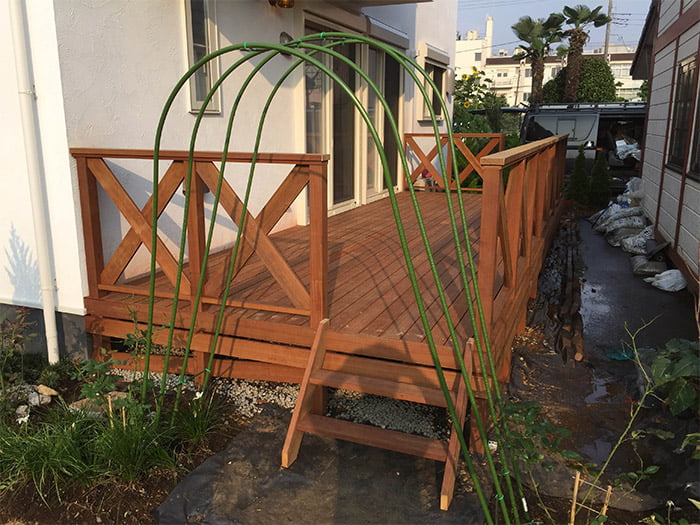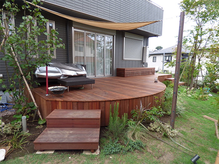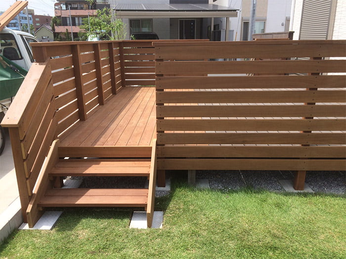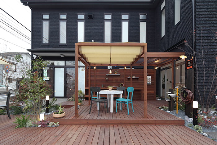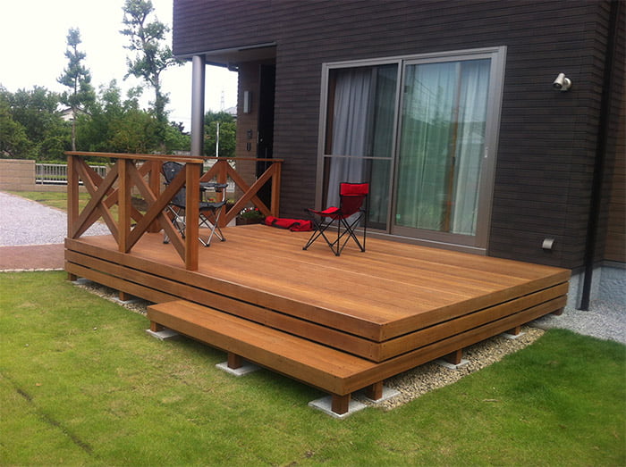 高耐久のウッドデッキ材で作る青空の下のリビングをお楽しみください。天然木 ウッドデッキ材