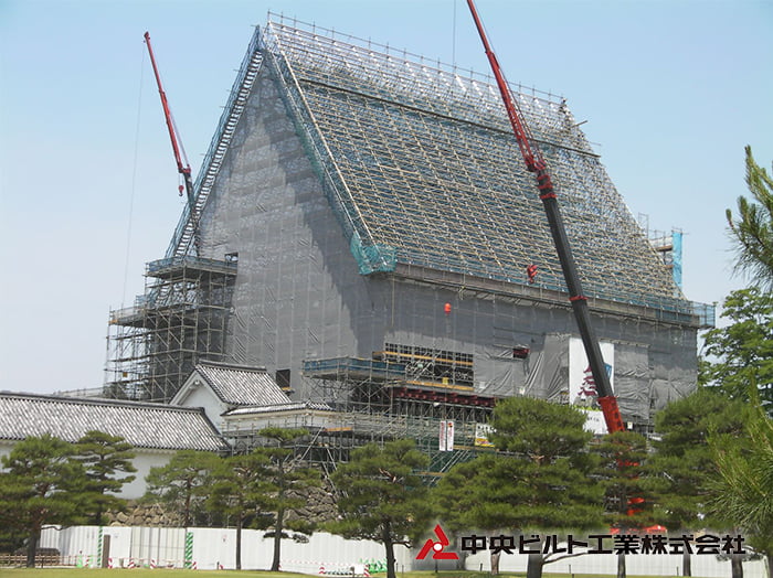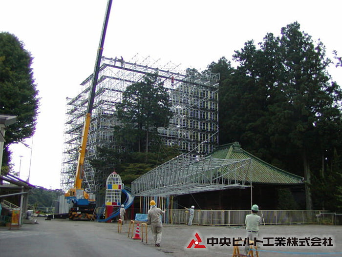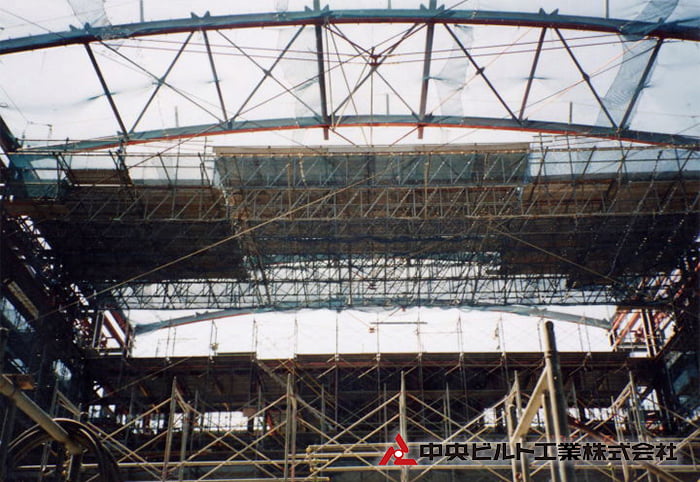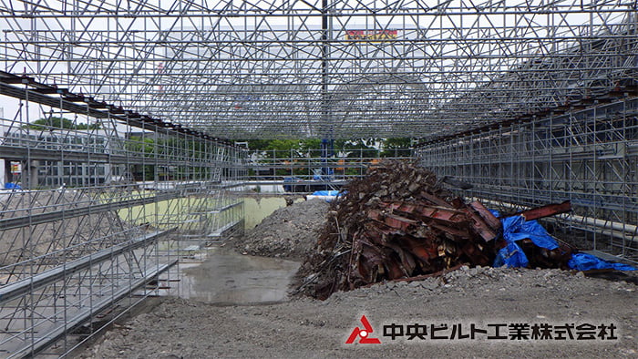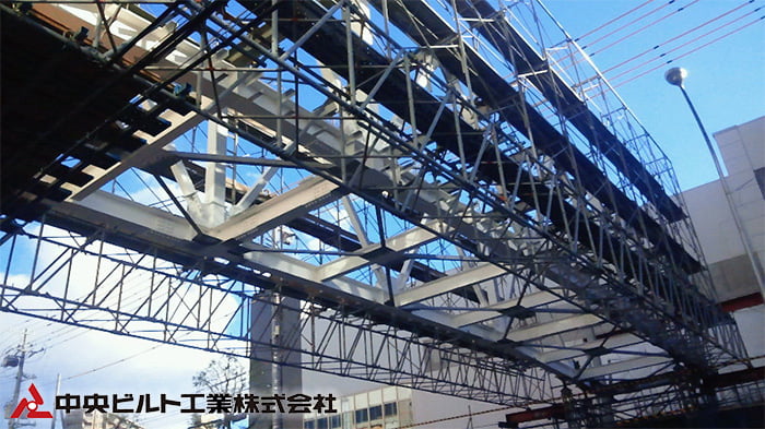 「マルチトラス」は、超高層・高層住宅の外部吊足場として現場の仮設機材を