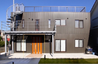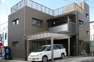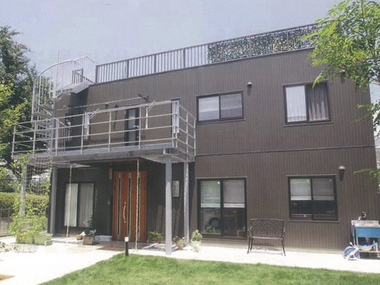 「ガンバリ工法」は、アルミ外壁一体型のコンクリート型枠「ガンバリボード」を屋外側の型枠として用いた特許工法です。ガンバリ工法で建てた家は、アルミの高級感と優れた耐久性を両立。外壁にリブがあるので、エクステリアを好きな時に取り付け・取り外しができて跡も残りません。また、強度が強いので補強なしに屋上が利用でき、鉄筋コンクリート造だから耐火工事不要。インナー車庫が簡単にできます。