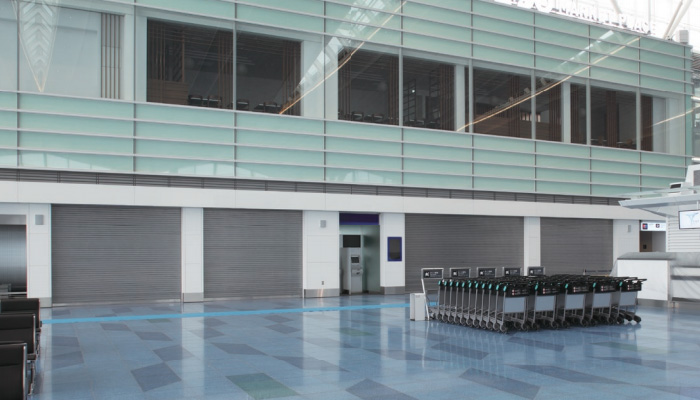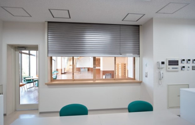 防火・防煙シャッターには、遮炎性能と遮煙性能、自動閉鎖装置を装備。