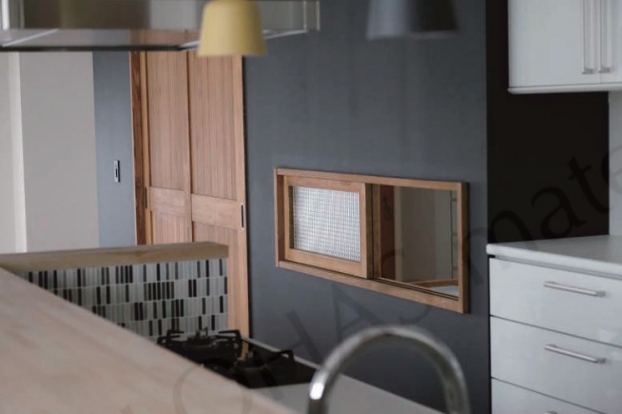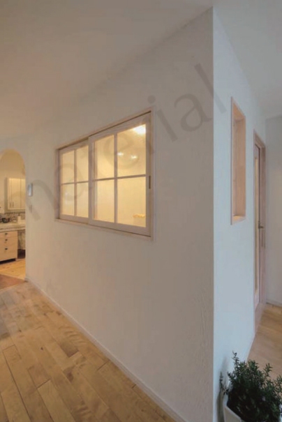 部屋と部屋をつなぐインテリアウィンドウ。室内窓を設け、やわらかな光を取り込むことで、部屋の閉塞感をやわらげ明るく開放的な空間を生み出します。