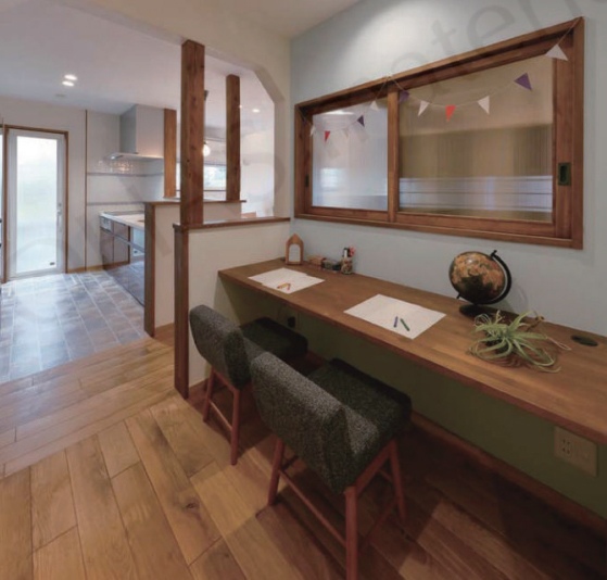 壁や間仕切りで分かれていても、室内窓があれば程よく家族の気配が感じられるので、孤独感も解消でき、子どもがいても安心です。