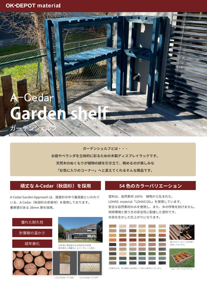 仕上げにはオリジナル自然塗料の「LOHAS OIL」を使用しており、カラーバリエーションも豊富。