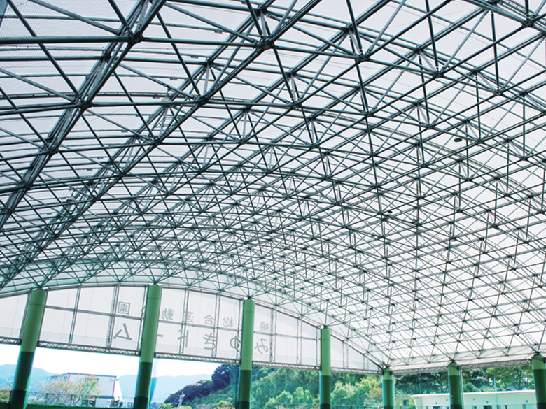 膜構造は他の建材・工法に比べ、軽量なうえ強靭な構造。納期も短くて済み、コスト削減にもつながります。