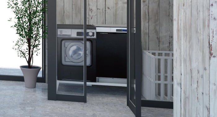 一般的なコインランドリーでは禁止されていることの多い、ペット用品の洗濯を行うことができるコインランドリーシステム。従来の洗濯機ドラムに比べ、ホールを大小の組み合わせにしたペット専用の特殊ドラムを導入。