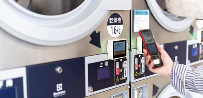 「スマートセレクター」は、コインランドリーで活用できる、スマホを使ったQR決済システム。オーナー側は、スマホで店舗運営や売り上げの管理システムが利用できます。