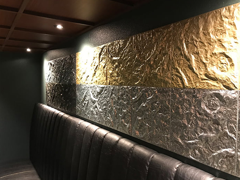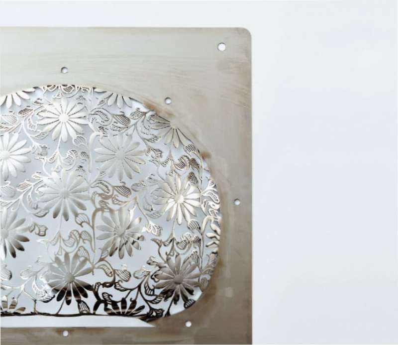 素材の質感や形、模様を薄板金属に転写する「自在成形」、金属を異形状に絞る「逐次成形(インクリメンタルフォーミング)」、複雑で繊細な形状に型取りし理想の表現を可能にする「微細加工」、アイデアを形にする「板金設計」の4つの技術を使ってアプローチ。