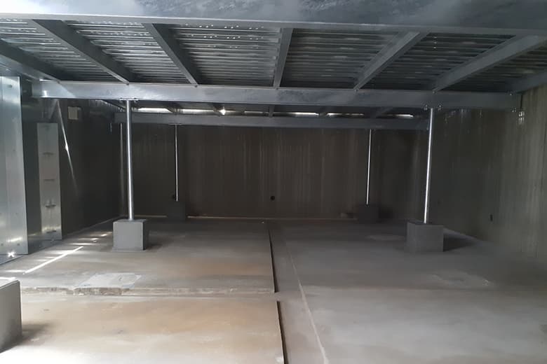 主な加工製品は、立体駐車場(二段式)、ロボットチェーンゲート、ピットステージ(暫定平面)、駐輪屋根などがあります。