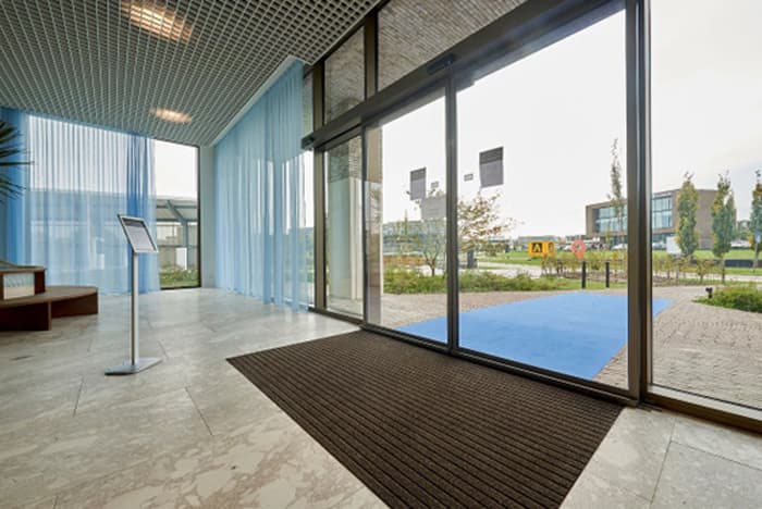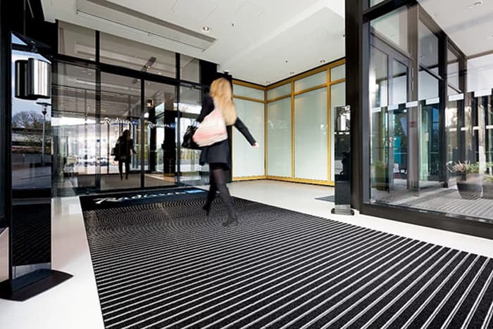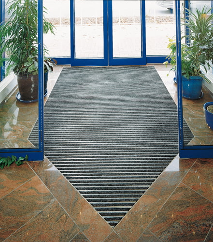 エムコのエントランスマットは、強力な汚れ除去効果で、外部からの汚れをプロテクト。リブとリブの間には隙間があるので、塵や埃が落ち表面に汚れが溜まりません。