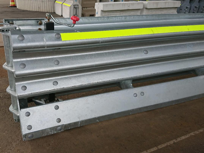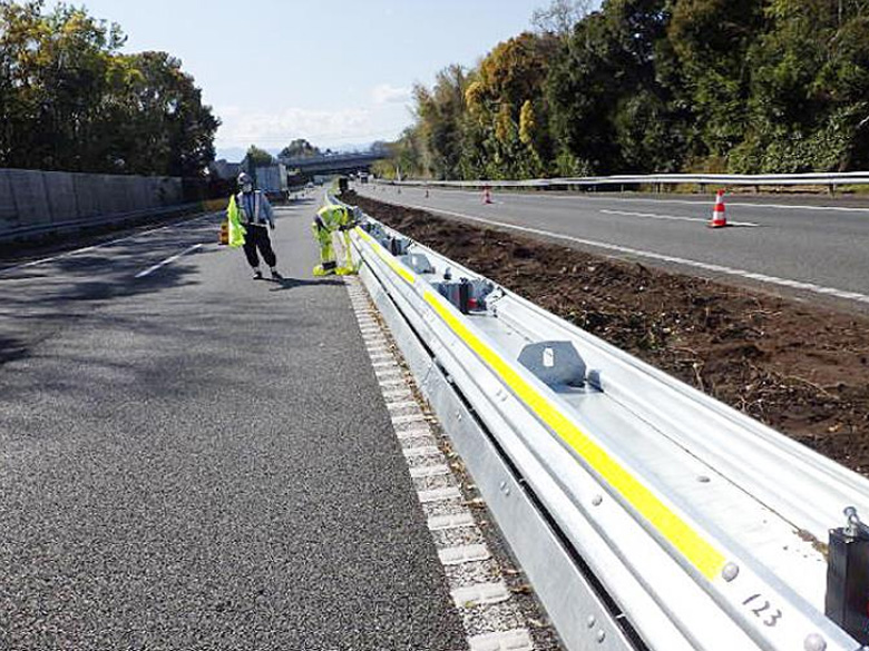 「バルカンバリアゲート」は、鋼製の仮設防護柵なので、コンクリート製に比べ扱い易く、設置後の平行移動も容易なので、短時間での規制の切替えが可能。高速道路上で作業する際、交通規制において、通行車両の侵入防止対策として有効で、走行車両と規制内で働く方の安全を確保します。