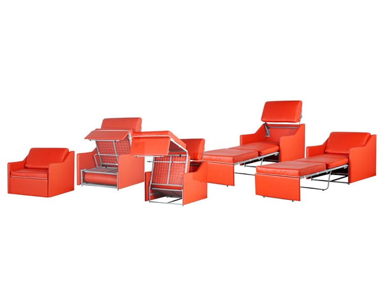 「シットネル」は、座面下にベッドを収納し、座る(SIT)状態から寝る(NEL)状態に早変わりできるソファベッド。客室でのエクストラベッドとして利用できるほか、災害時の緊急用ベッドとしても活用できます。