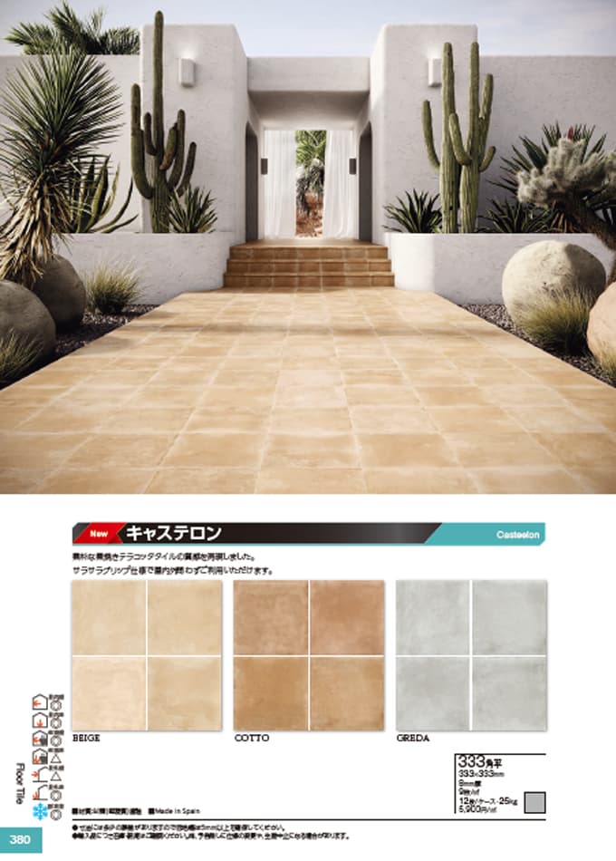 ビルや住宅などの屋内壁、屋外壁、住宅などの浴室壁、浴室床、ビルや住宅などの水濡れがない屋内床、ビルや住宅などの屋外床および土足での歩行や水濡れなどがある床、それぞれの用途に合わせた、多種多様な製品を掲載。