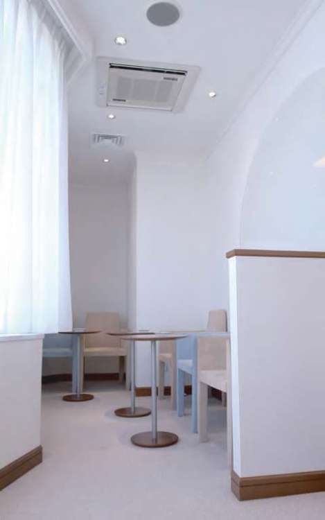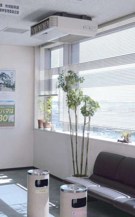電子式エアクリーナ「スカイフレッシュ」は、空間に応じた設置方法が選べます。天井埋込形は天井面にすっきりジャストフィットし、圧迫感を感じさせません。