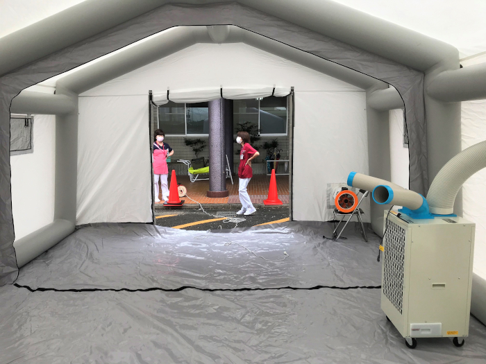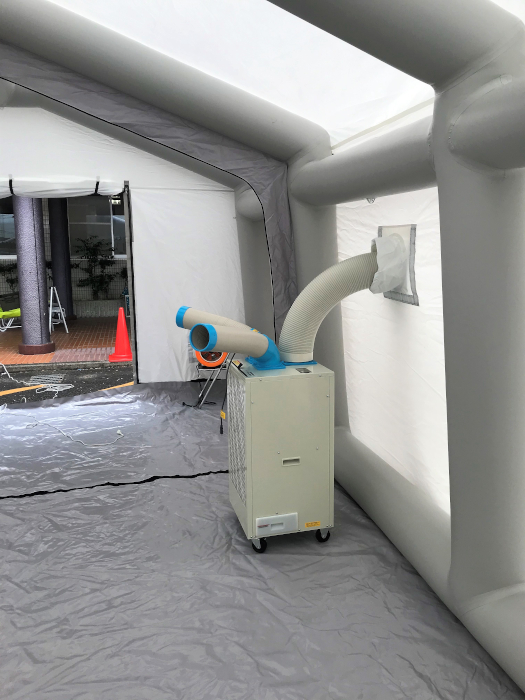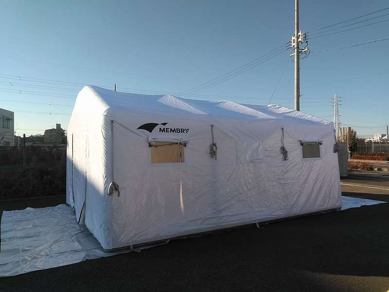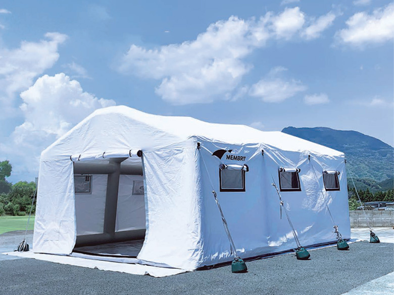 メンブリーシェルター 「air」は、構造が簡単で部品も少ないため、少人数での素早い設営が可能。梱包もコンパクトなので保管性に優れ、持ち運びも容易。