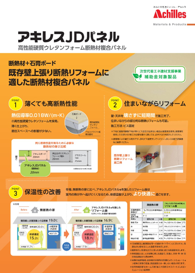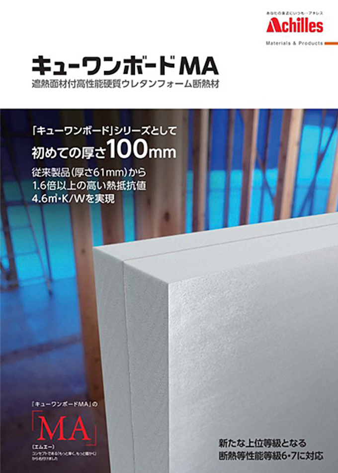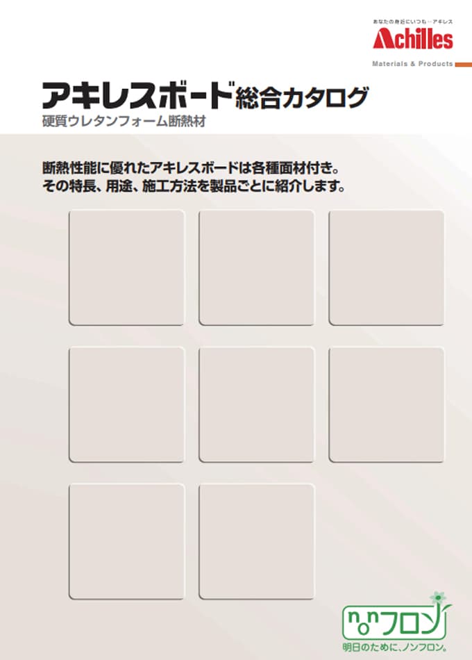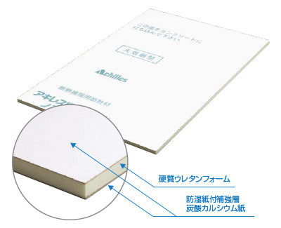 「アキレスボード」は、高い断熱性能を有する硬質ウレタンフォーム。省エネ性能に優れた建築を可能にし、結露防止にも最適です。