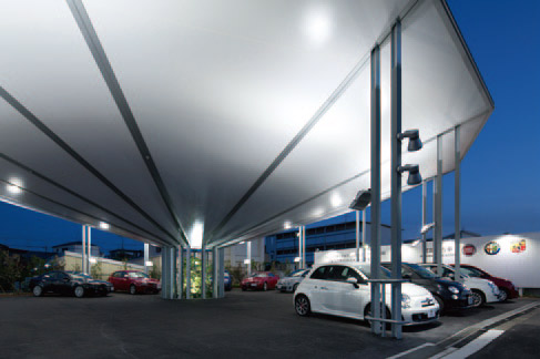 FG-8Fは、不燃の膜材料を使用しているので、準防火地域にもテント倉庫、荷さばき場の庇、膜構造建物を建てることができます。カラーバリエーションも豊富に展開。