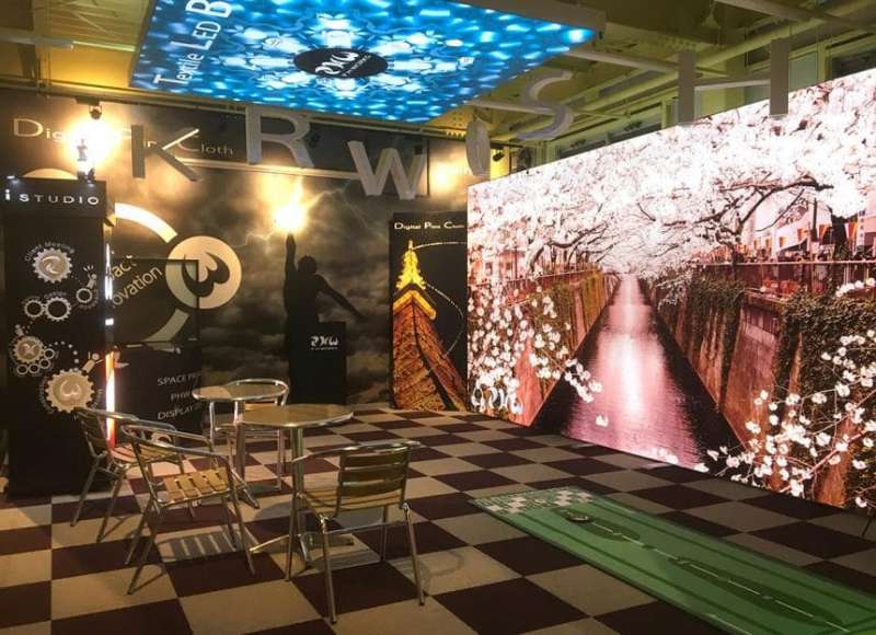 テキスタイルLEDボックスは、アルミフレームとLED モジュールが一体型になった内照式イージーグラフィックシステム。施工が簡単で、グラフィック面は継ぎ目のない一枚の生地を使用。