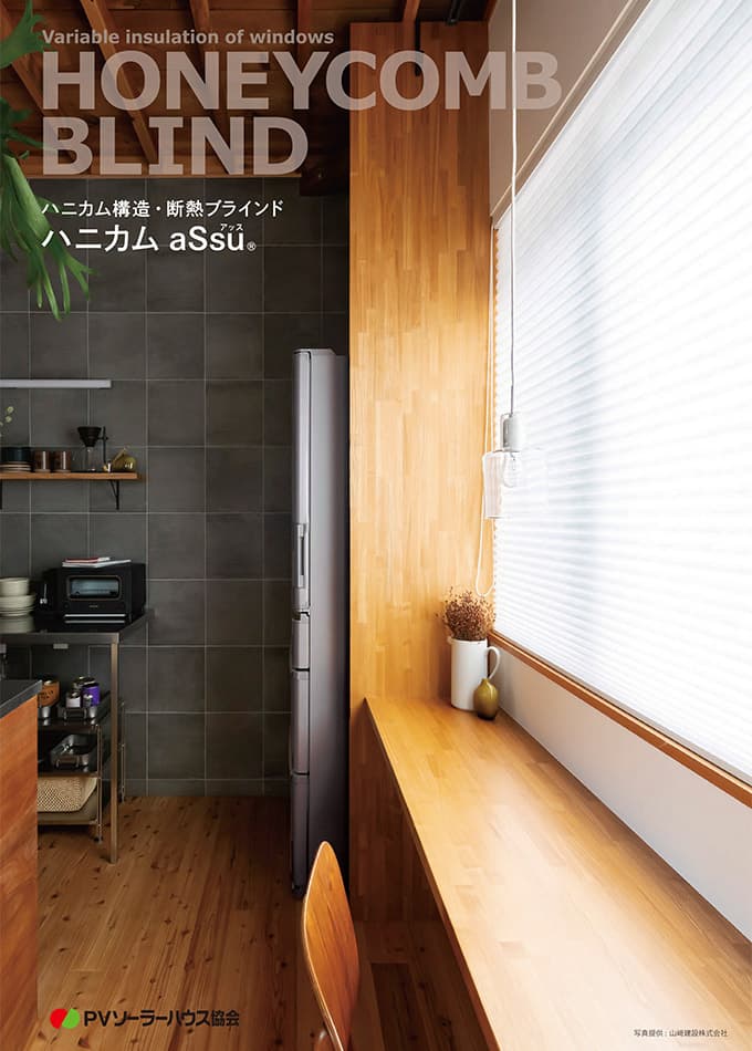 「ハニカムaSsu(アッス)」は、ハニカム(蜂の巣)状の構造に空気を閉じ込めることで、窓からの外気の流入や室内の暖気、冷気の流出を抑える「断熱材」の役目を果たします。