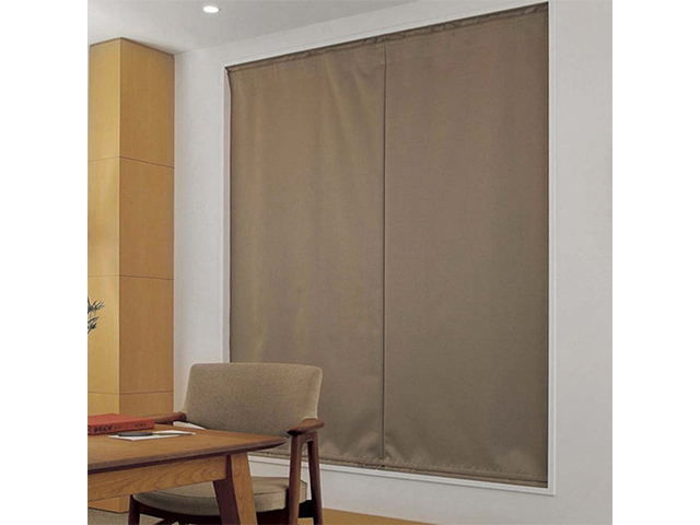 「サウンドガードⅢ」は、カーテン地と高密度の遮音層、塩ビ層(エンボス加工)を一体構造にしたカーテン。質量が 1.2kg/m² と重いため、優れた遮音性能を発揮します。