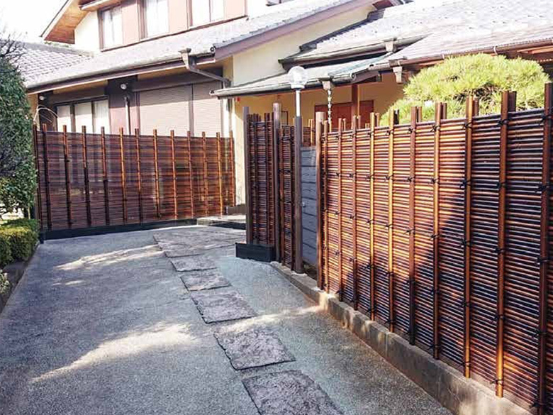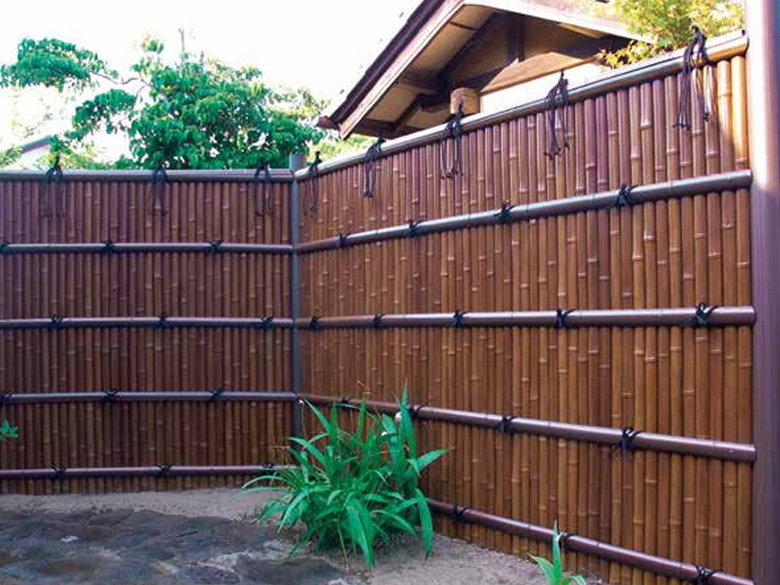 繊細なかや竹の地肌を表現したプラ竹パネルや、天然杉板の質感そのままに再現した垣根パネルなど、新製品も掲載しています。