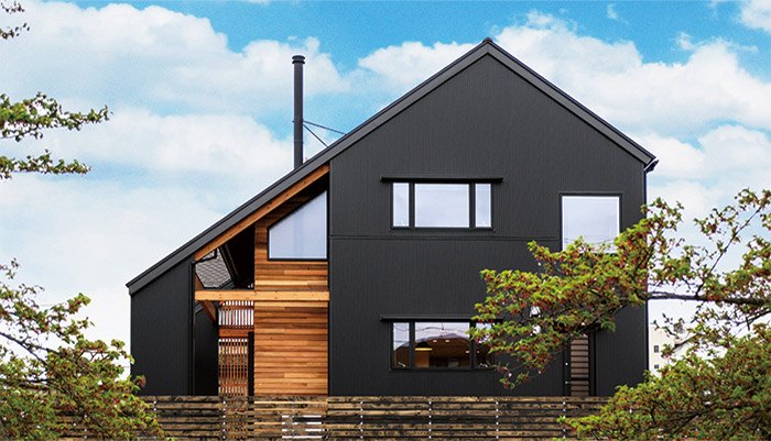 高い意匠性と優れた機能性をあわせ持つ外壁パネル「アイジーヴァンド」は、2枚の金属板で断熱材を挟んだ事務所や店舗などに最適な鉄骨造専用の外壁材です。軽量で断熱性、防耐火性に優れておりパネルの幅が最大90cm、長さが最長9.3mと大きいため、主に大~中規模の工場・事務所等に使われています。