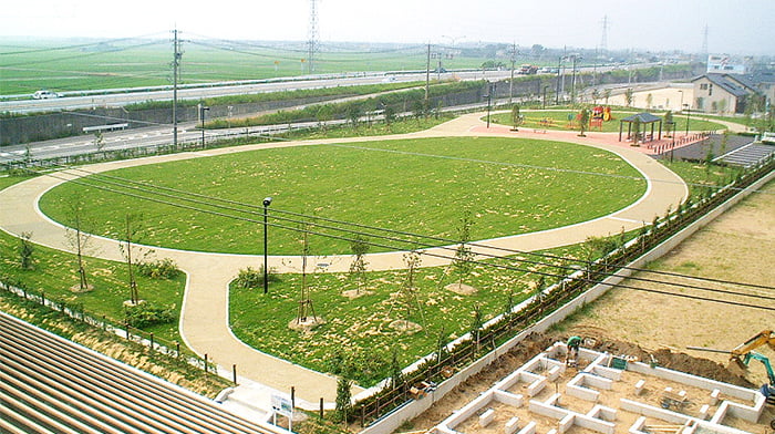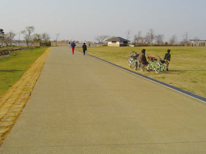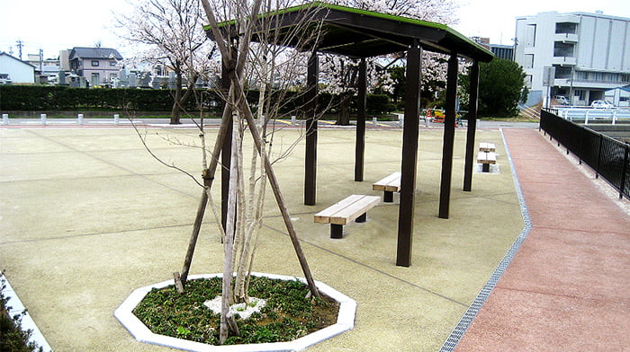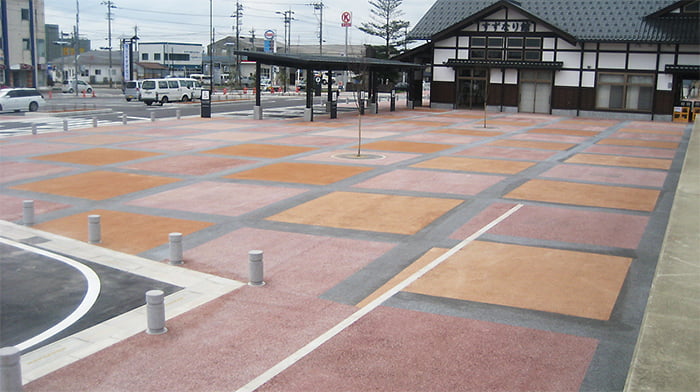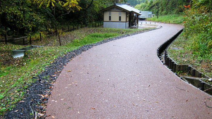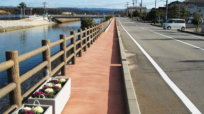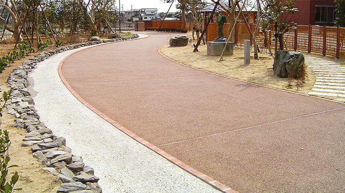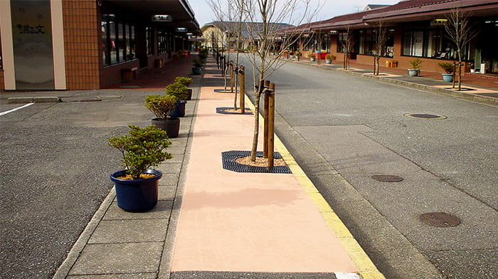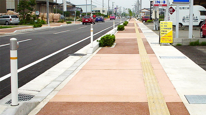 照り返しが少なく、滑りにくいため歩行感が良く、お年寄りや子供、障害者にもやさしい舗装です。