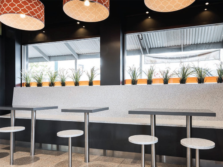 プレミアム人工大理石「Staron(スタロン)」は、優れた加工性と耐久性を有しています。メンテナンスが簡単な素材のため、さまざまな空間の内装材として採用され、創意的なデザイン演出が可能。
