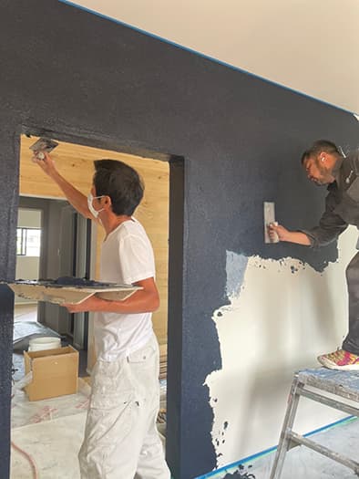 「繊維壁」の復刻、壁に塗るデニム