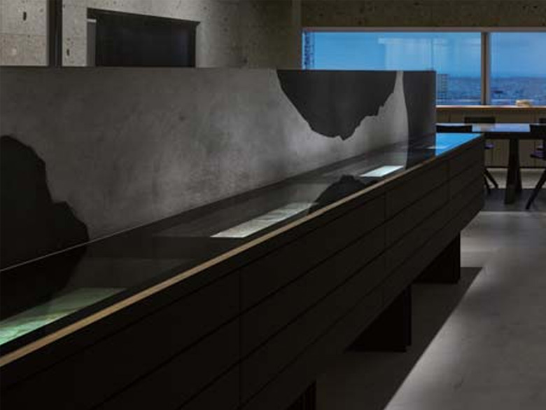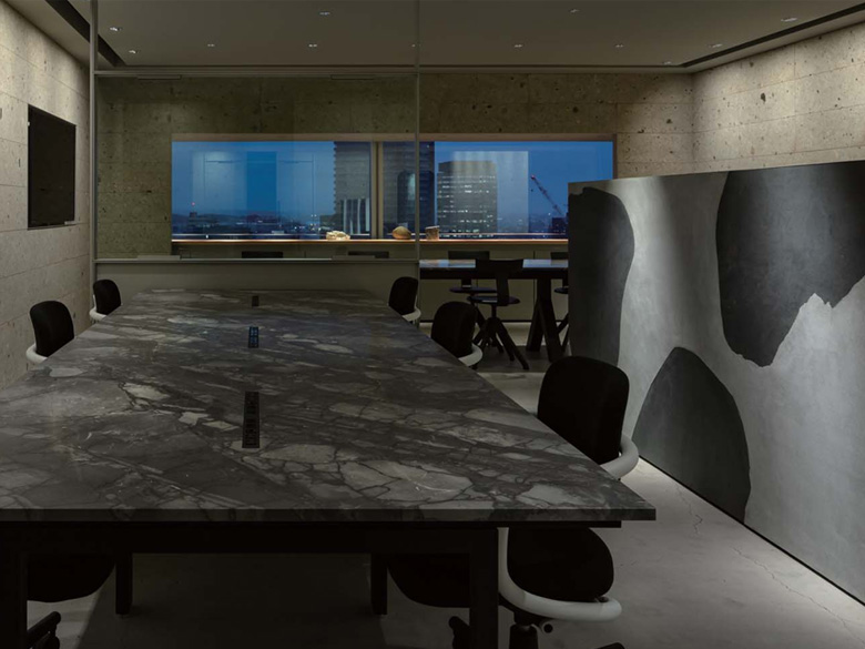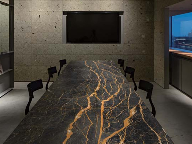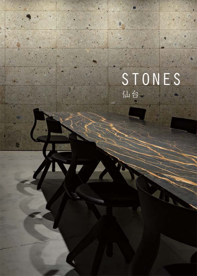 「STONES仙台」は、2022年夏、オフィスと同居するスタイルで開設した石のショールーム。さまざまな石を体感し情報を得るための空間であるのと同時にオフィスでもあります。