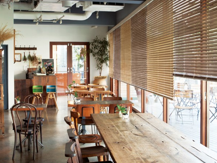 TOSOがたどり着いたのは、ブラインドの機能はそのままに、木のぬくもり、魅力を最大限に生かすこと。木目が美しく見えるように、スラット幅を50mmに統一。