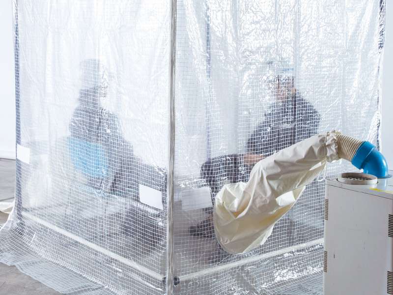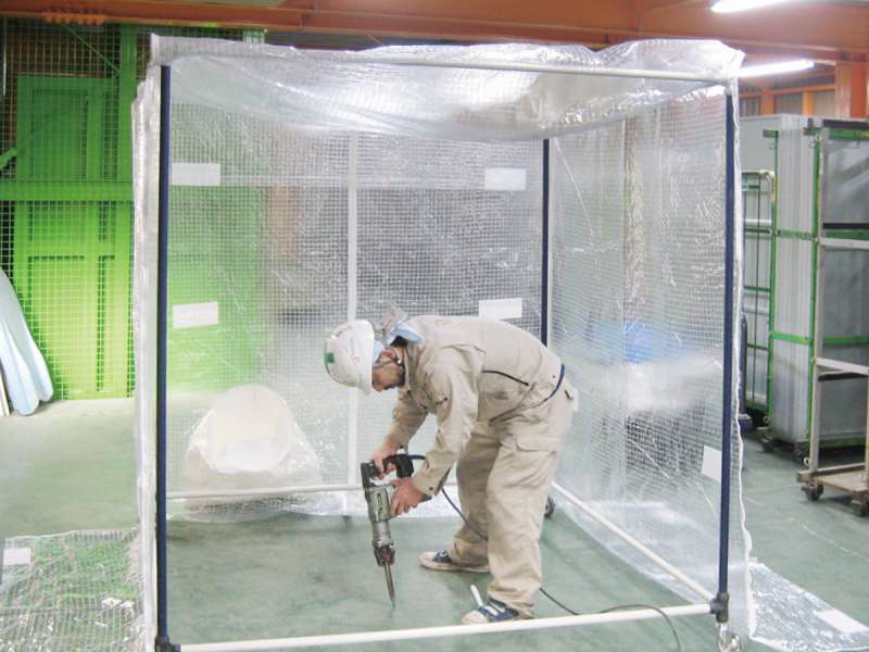 室内の床などの解体時におけるホコリ飛散防止やボード切断時の粉塵対策として、休憩所としても最適です。