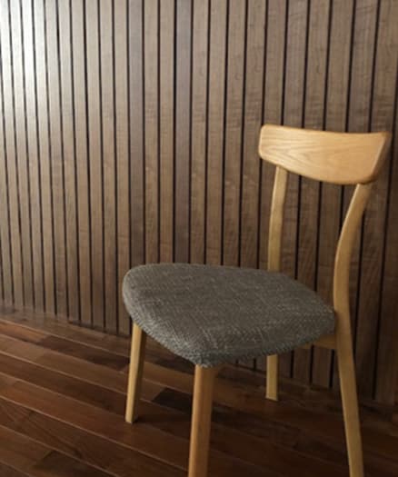 天然木の持つおおらかさと杢目の深み。そして、広めに配置した凹凸面と深いスリットが優雅で落ち着いた印象を与え、ホテルライクな空間を演出します。