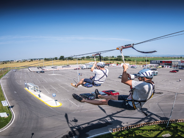 複数のジップラインを並行して設置することで来場者が乗り物を共有することができ、この体験をソーシャルなものに変えることができます。