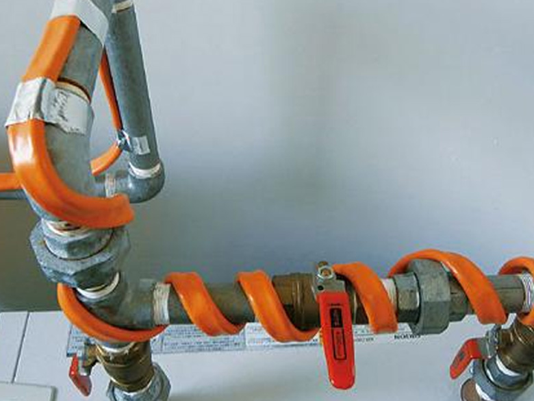 温度を調節するサーモスタットを使用しなくても異常過熱や焼き切れを起こすことがなく、ヒーター同士が接触してもオーバーヒートしないので、重ね巻きなどの施工も可能。
