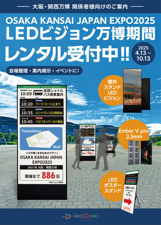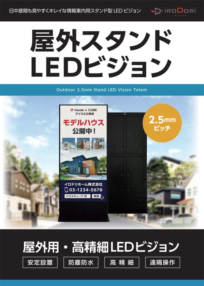 日中昼間も見やすくキレイな情報案内用スタンド型 LED ビジョン。近くでも見てもキレイで美しい 2.5mm ピッチを採用。