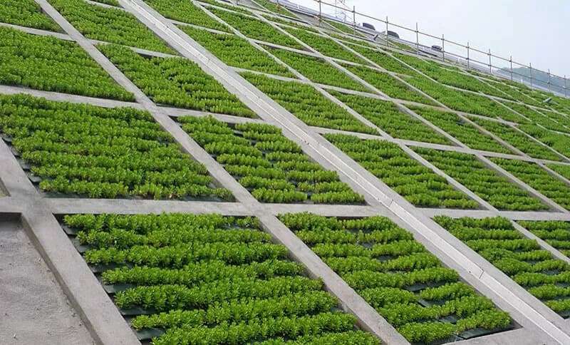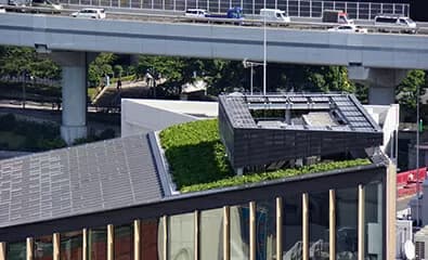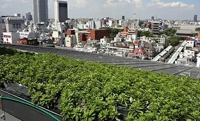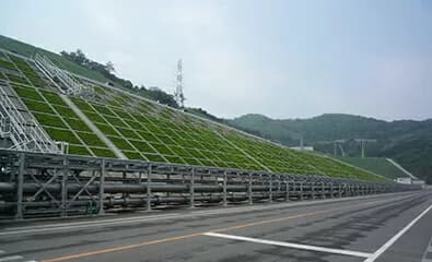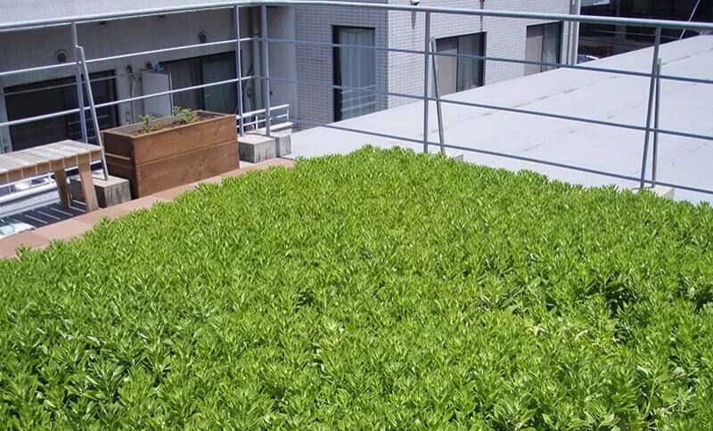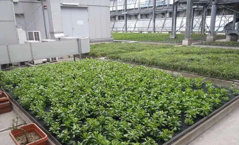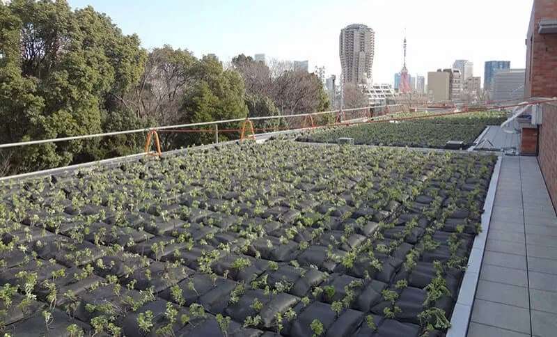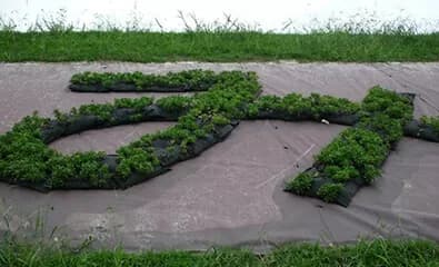乾燥や暑さに対する抵抗力、耐多湿性や耐寒性が極めて強い「キリンソウ」を、環境緑化に最適なハイブリッド植物に改良したものが「常緑キリンソウ®」です。常緑キリンソウ袋方式®(FTMバッグ)は、袋のファスナーを開いて苗を入れファスナーを閉じ、袋を並べるだけで簡単に緑化が完成します。