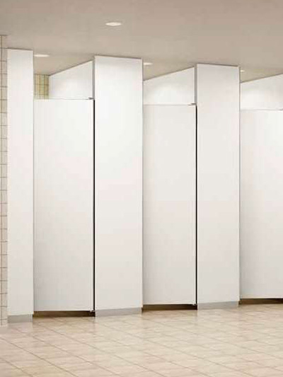 不特定多数の人が使用するトイレブース。直接手が触れ易い表面材、金物、アルミエッジに抗ウイルス加工を施しました。