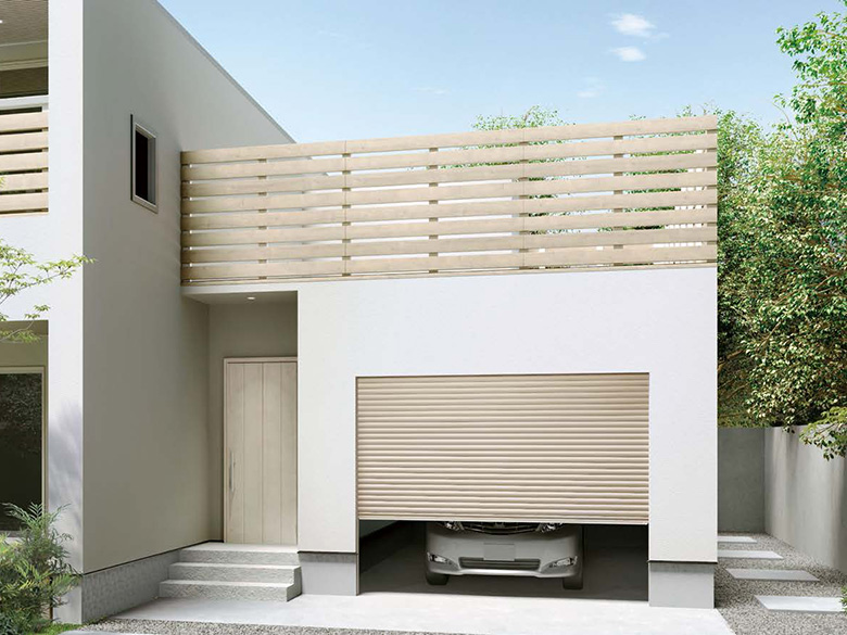 人気商品の「静々動々」を、車一台用のガレージシャッターとして、納まりをよりコンパクトにした商品。スラットの軽量化や滑り製のよいガイドレールゴムの使用などにより、開閉音の低減・風によるバタつき音の抑制を実現。