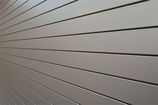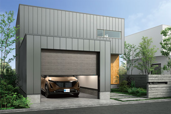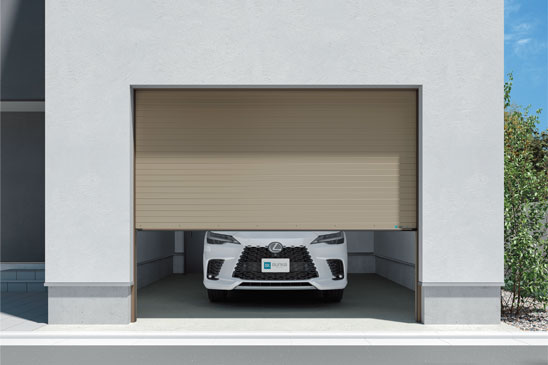 フラットでシンプルなスラットは、洗練されたデザインで建物との一体感を演出。レールやケースの納まりを小さくすることで、ビルトインガレージの有効間口を最大限活用。