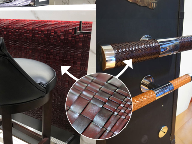 従来廃棄されていた裁断端材を粉砕・特殊溶剤にて再結着させてシートにして再利用。革本来の輝き・しなやかさはそのままに、シート状にした事により「長さ」の制限がなくなり、は本革と比べても 40%以上お安くなります。