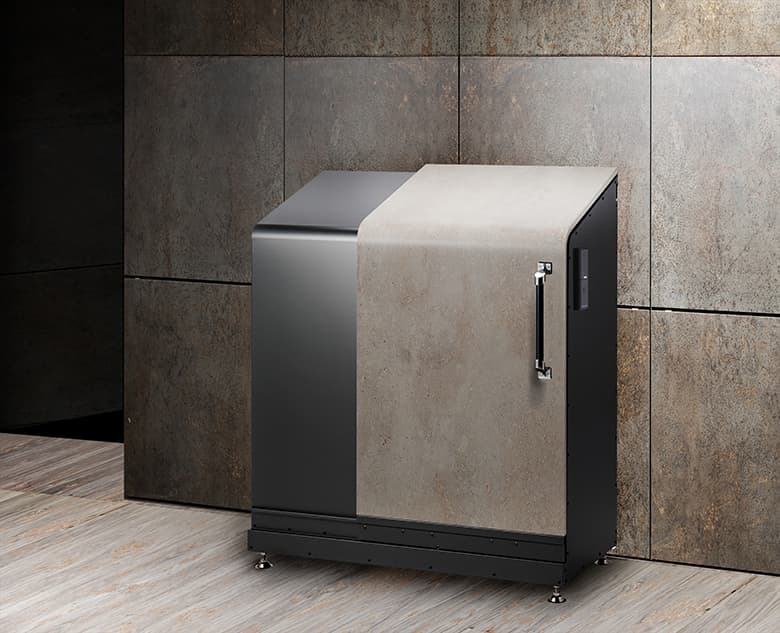 「Intelligent DUSPON HIGH SLIM(インテリジェントダスポンハイスリム)」は、従来のダスポンが持つ高い機能性とデザイン性はそのままに、万全のセキュリティを実装した新時代のゴミステーション。スマートロックを搭載し、プライバシー保護の観点からも高い効果を発揮。